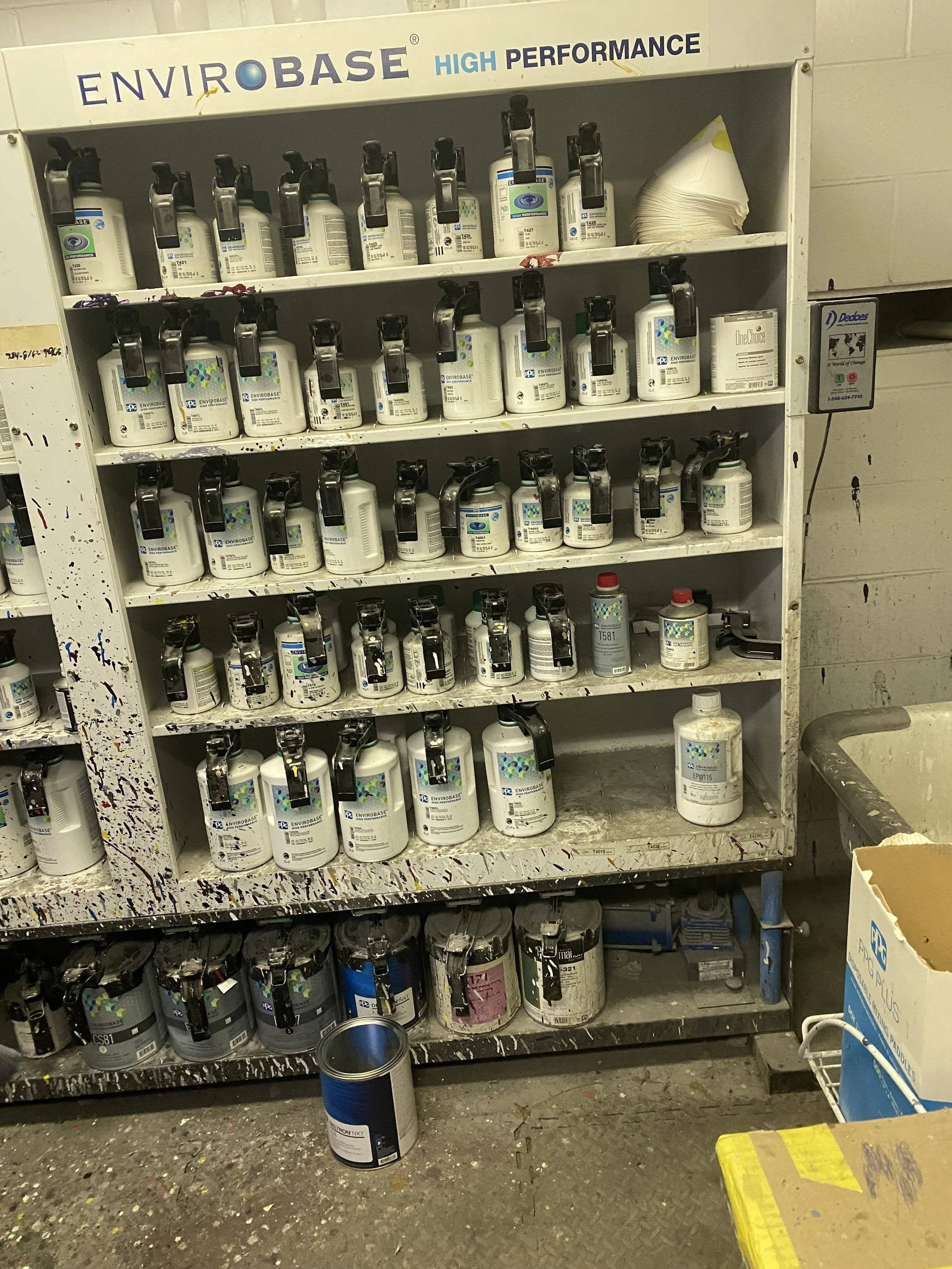 To deeply understand how painters use the application, I conducted field visits in active body shops. Seeing the software in its real environment revealed critical context that couldn’t be captured through screens alone — painters working in noisy, fast-paced spaces, often with gloves on, juggling physical tools while moving between vehicles, paint booths, and mixing stations.