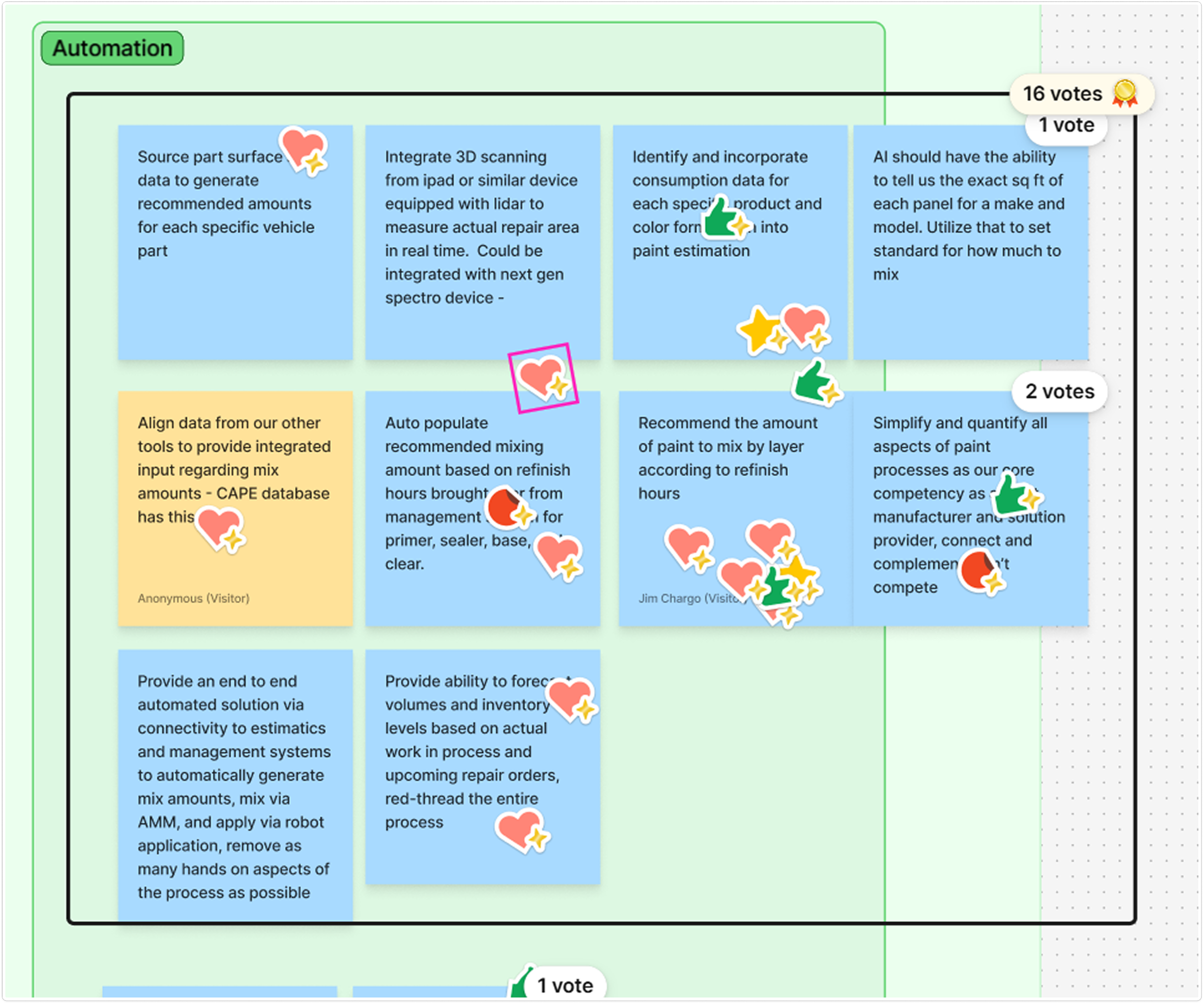I had participants vote on the strongest idea within each theme, then brought those top solutions into a final comparison. We voted again and one solution won by a landslide.