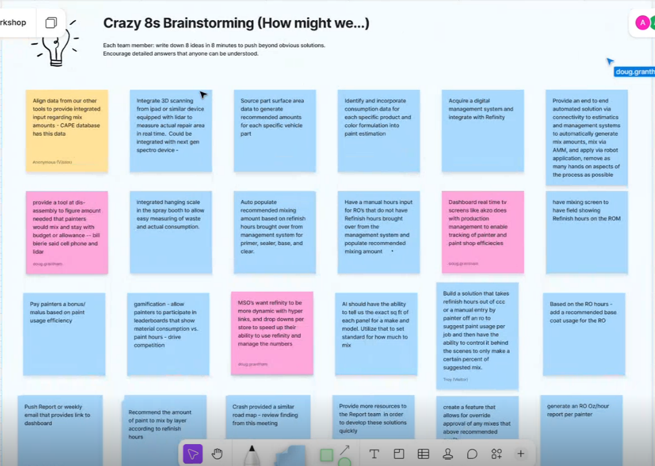 At the time, there was significant misalignment around the paint wasting problem across multiple parts of the organization. Ideas coming from the Mixing portion of the painter’s journey conflicted with what was being asked for from Reporting. On top of that, the Global Product Owner had a different perspective entirely from other Product Owners. Then there were the more external voices, teams closest to the painters and large body shops, who were hearing real financial complaints from shops and had their own, often conflicting, ideas on how to solve the issue.